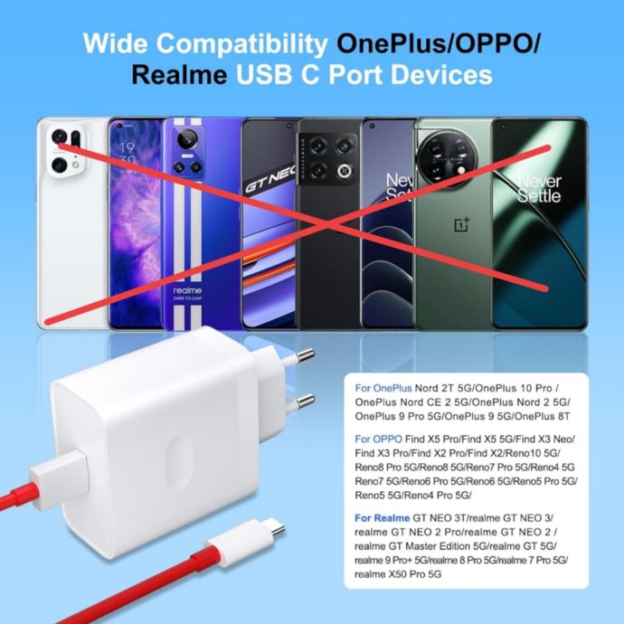 Punjač za Realme, ONEPLUS i OPPO mobitel 80W