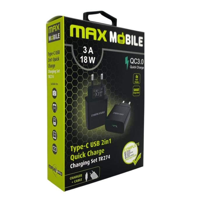 Punjač za smartphone SET 18W 3A 3.0 USB+type C QUICK CHARGE TR274