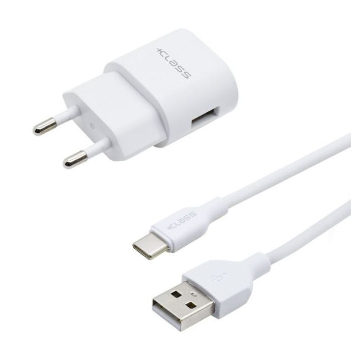 Kućni Punjač +CLASS USB 2.1A+USB Kabel Tip C Bijeli - 8€