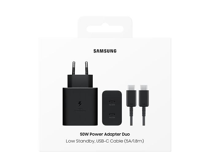 SAMSUNG originalni tip C zidni punjač + kabel tip C na tip C PD 3A 50W EP-T5020XBEGEU crni