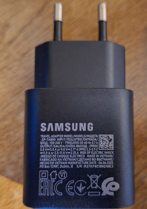 Prodajem novi Samsung punjač EP-TA800, 25W, super brzo punjenje. Punjač 9€, zajedno sa USB-C kablom 10€.