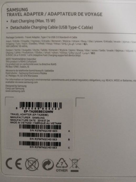 samsung s10e punjač adapter + usb kabel kabal
