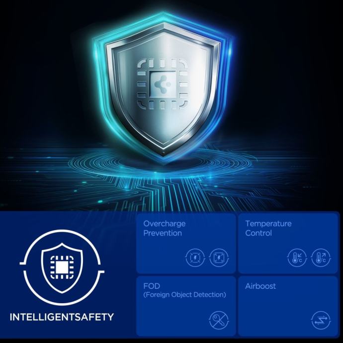 Zahvaljujući magnetskom MagSafe sustavu, punjač sigurno drži pametne telefone na mjestu, osiguravajući optimalnu vezu i punu snagu punjenja. Aktivna kontrola temperature štiti uređaje od pregrijavanja, dok ugrađene značajke sprječavanja prekomjernog punjenja i otkrivanja stranih predmeta (FOD) osiguravaju sigurnost i dugotrajnost baterije minimizirajući rizik od prekomjernog punjenja ili smetnji uzrokovanih metalnim predmetima.