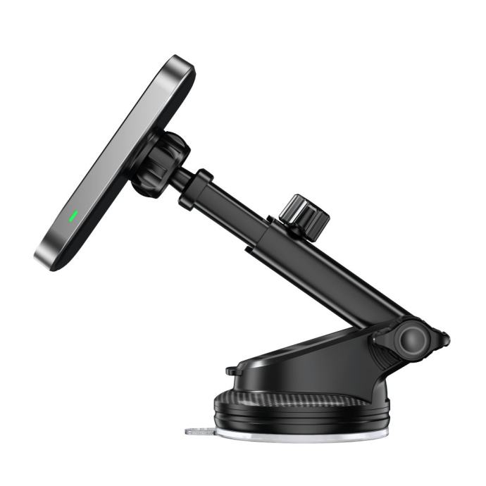Snažni magneti automatski će prilagoditi telefon držaču, održavajući ga u stabilnom i sigurnom položaju tijekom vožnje, čak i u teškim uvjetima. Udoban i jednostavan za korištenje, omogućuje korištenje pametnog telefona u okomitom ili vodoravnom položaju, a čvrsta ruka podesiva po duljini, u kombinaciji s okretnom glavom, omogućuje prilagodbu i udobnost korištenja.