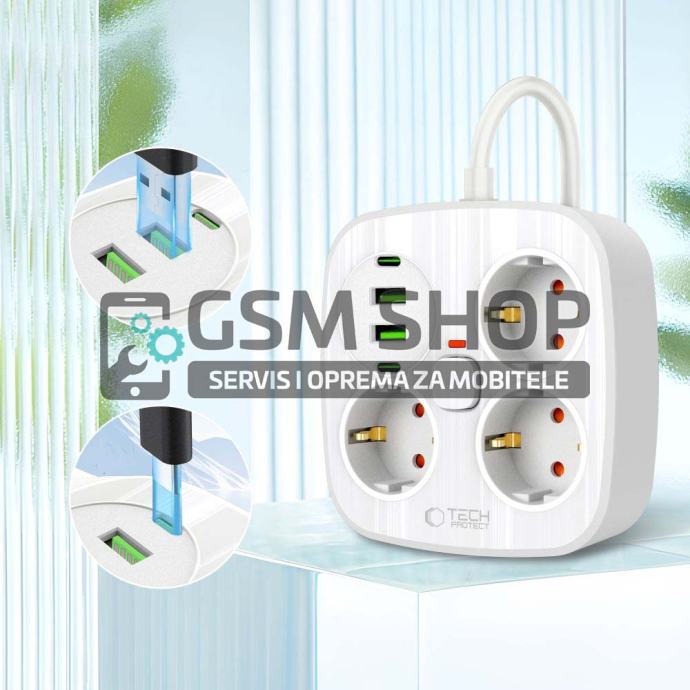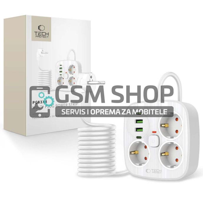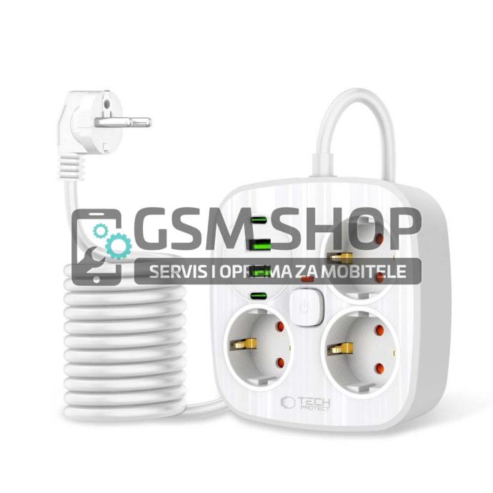 Tech-Protect PCS3X4 produžni kabel 3 utičnice/ 4 USB priključka bijeli