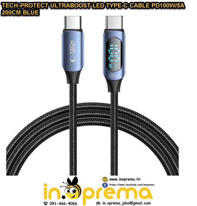 CIJENA - TECH-PROTECT ULTRABOOST LED TYPE-C CABLE PD100W/5A 200CM BLUE - 12,50 EUR