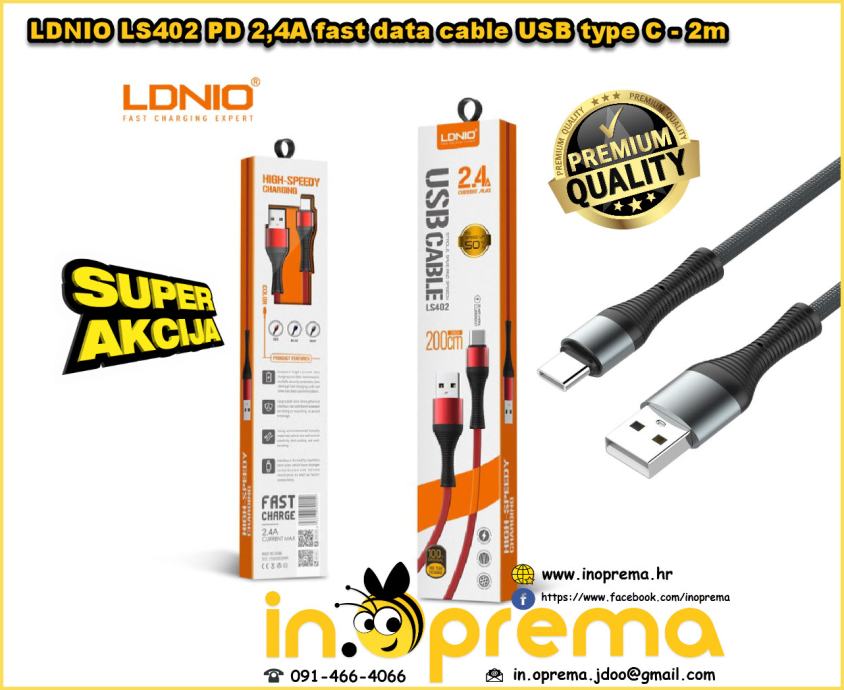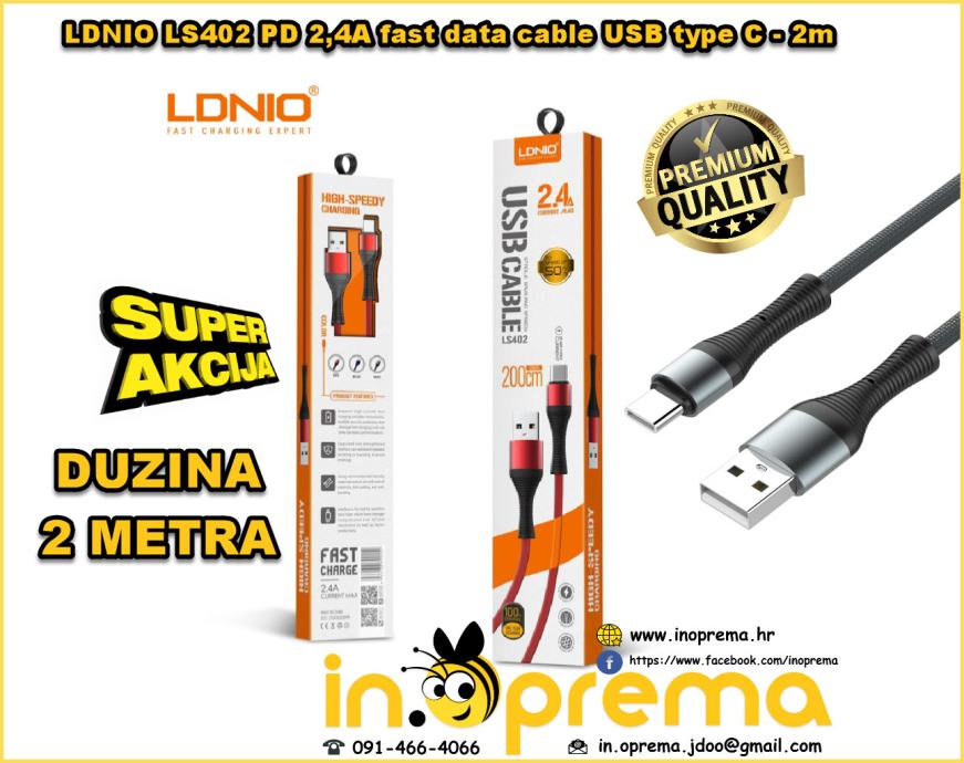 TIP: LDNIO LS402 PD 2,4A fast data cable USB type C - 2m