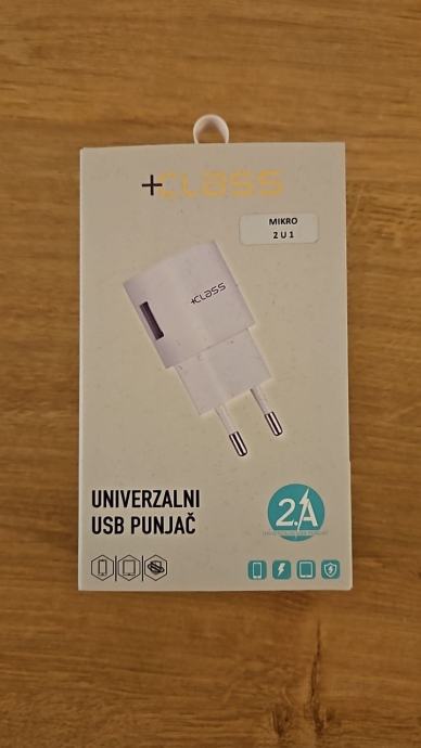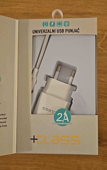 Univerzalni punjač 2,1 A/5 V - USB-A + gratis kabel USB-A/micro USB. Novo i nekorišteno. Bez računa i bez garancije.