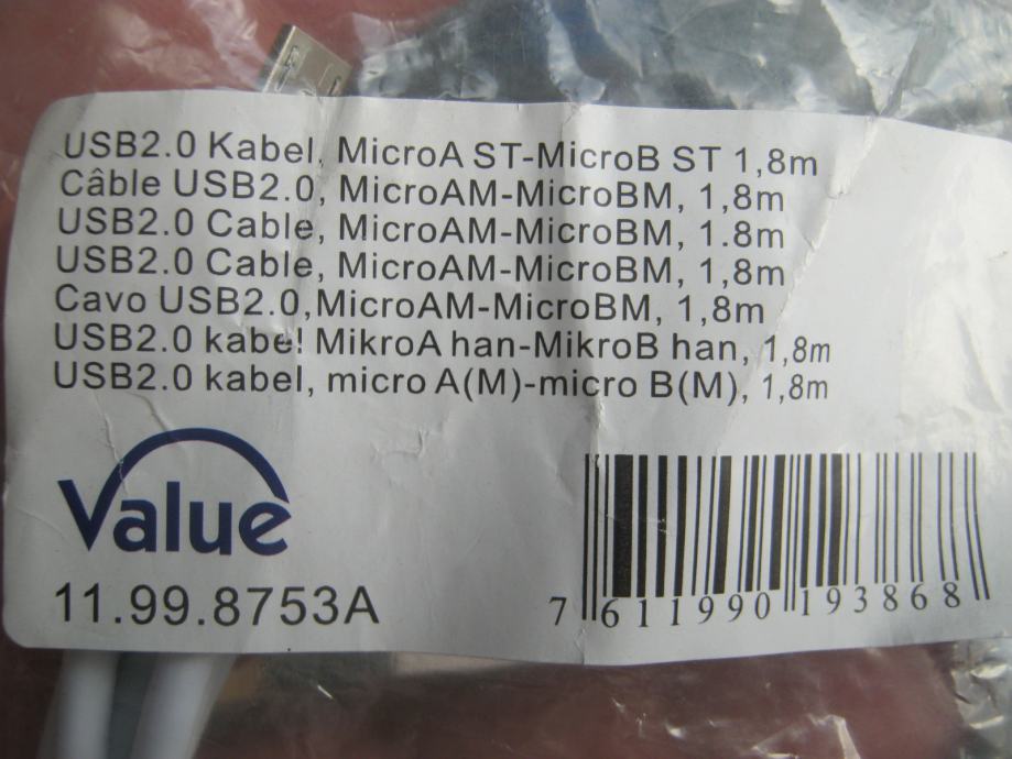 USB2.0 KABEL MIKROA - MIKROB DUŽINE 1.8 METARA(OSIJEK)