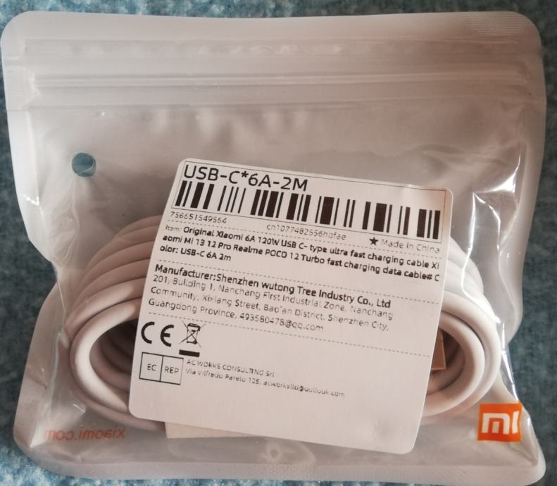Original kabel,dužine 2metra, podržava super brzo punjenje 67W.