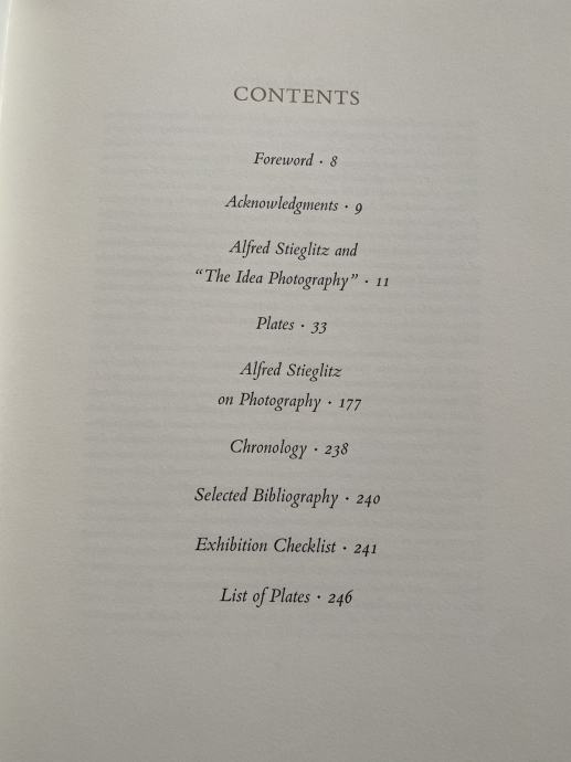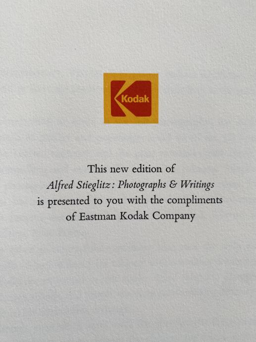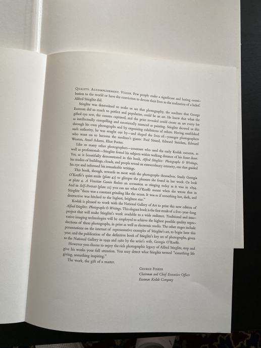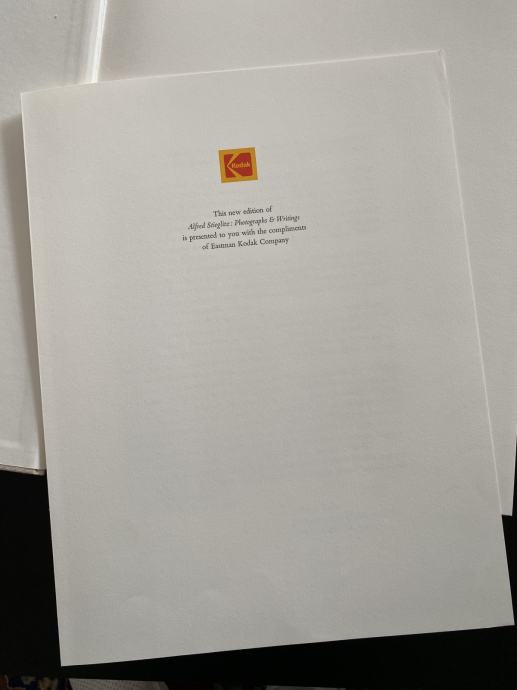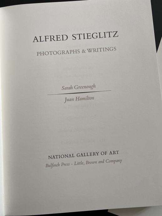 Monografija Alfred Stieglitz: Photographs & Writings, 246 stranica. Knjiga je velikih dimenzija 36 x 29 cm.