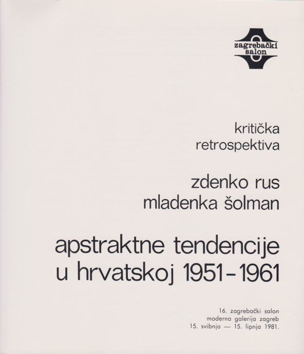 Zdenko Rus, Mladenka Šolman: APSTRAKTNE TENDENCIJE U HRVATSKOJ 1951-1961, Moderna galerija, Zagreb 1981.