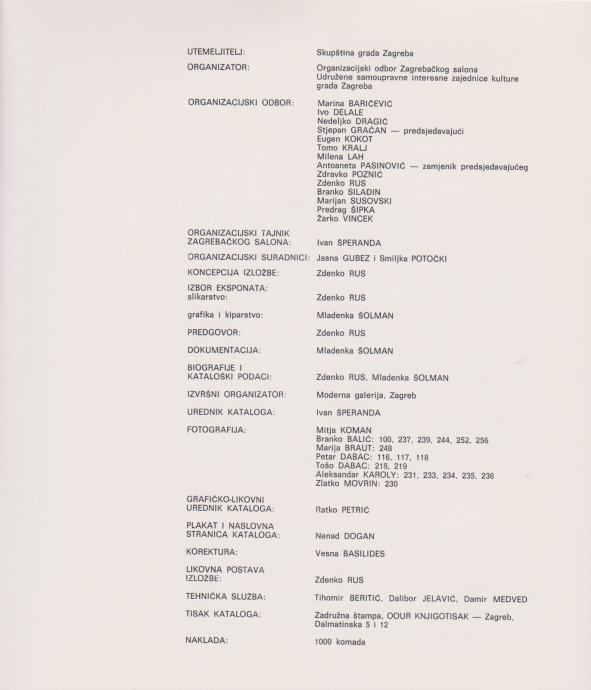 Dokumentacija: Mladenka Šolman.Fotografije: Mitja Koman, Branko Balić 100, 237, 239, 244, 252, 256. Marija Braut 248. Petar Dabac 116, 117, 118. Tošo Dabac 218, 219. Aleksandar Karoly 231, 233, 234, 235, 236. Zlatko Movrin 230.