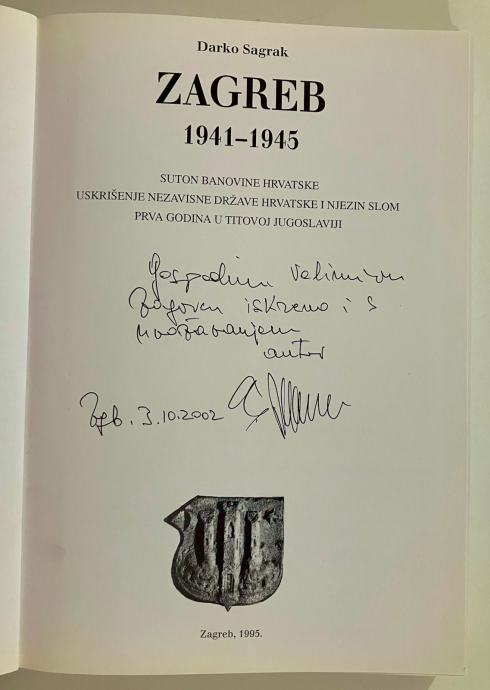 Darko Sagrak - Zagreb 1941 1945 #2 Posveta i potpis autora