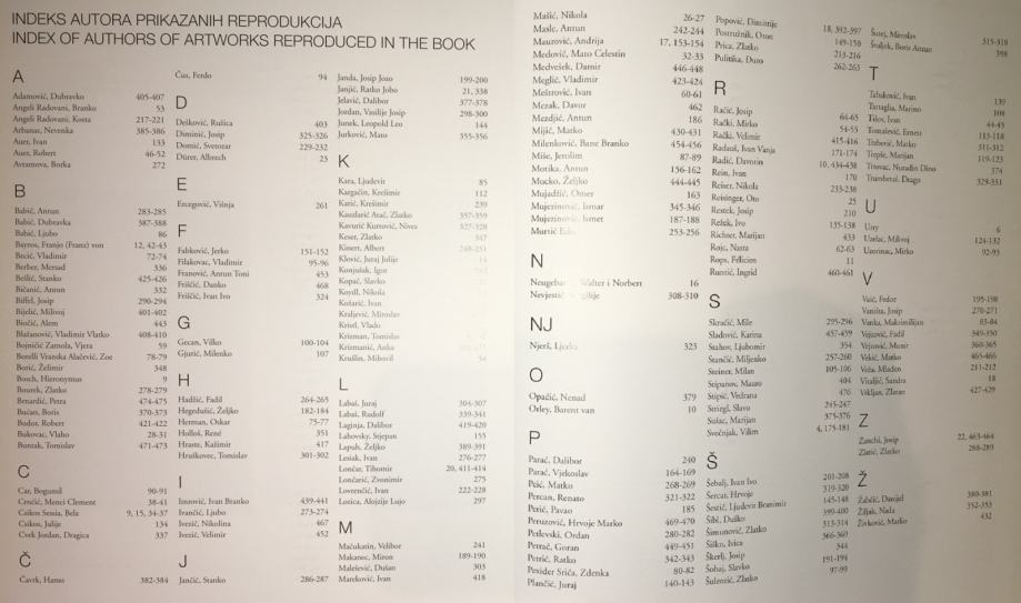 Dubravko Adamović, Branko Angeli Radovani, Kosta Angeli Radovani, Nevenka Arbanas, Ivan Auer, Robert Auer, Borka Avramova, Antun Babić, Dubravka Babić, Ljubo Babić, Franjo Franz von Bayros, Vladimir Becić, Mersad Berber, Stanko Bešlić, Antun Bičanić, Josip Biffel, Milivoj Bijelić, Alem Biočić, Vladimir Vlatko Blažanović, Vjera Bojničić Zamola, Zoe Borelli Vranska Alačević, Želimir Boričić, Hieronymus Bosch, Zlatko Bourek, Petra Brnardić, Boris Bućan, Robert Budor, Vlaho Bukovac, Tomislav Buntak, Bogumir Car, Menci Clement Crnčić, Bela Csikos Sessia, Julije Csikos, Dragica Cvek Jordan, Hamo Čavrk, Ferdo Čus, Ružica Dešković, Josip Diminić, Svetozar Domić, Albrech Durer, Višnja Ercegović, Jerko Fabković, Vladimir Filakovac, Antun Toni Franović, Danko Friščić, Ivan Ivo Friščić, Vilko Gecan, Milenko Gjurić, Fadil Hadžić, Željko Hegedušić, Oskar Herman, Rene Holloš, Kažimir Hraste, Tomislav Hruškovec, Ivan Branko Imrović, Ljubo Ivančić, Nikolina Ivezić, Velimir Ivezić, Stanko Jančić, Josip Jozo Janda, Ratko Jobo Janjić, Dalibor Jelavić, Vasilije Josip Jordan, Leopold Leo Junek, Matko Jurković, Ljudevit Kara, Krešimir Kargačin, Krešimir Katić, Zlatko Kauzlarić Atač, Nives Kavurić Kurtović, Zlatko Keser, Albert Kinert, Juraj Julije Klović, Igor Konjušak, Slavko Kopač, Nikola Koydl, Ivan Kožarić, Miroslav Kraljević, Vlado Kristl, Tomislav Krizman, Anka Krizmanić, Mihovil Krušlin, Juraj Labaš, Rudolf Labaš, Dalibor Laginja, Stjepan Lahovsky, Željko Lepuh, Ivan Lesiak, Tihomir Lončar, Zvonimir Lončarić, Ivan Lovrenčić, Alojzije Lujo Lozica, Velibor Mačukatin, Miron Makanec, Dušan Malešević, Ivan Mareković, Nikola Mašić, Antun Masle, Andrija Maurović, Mato Celestin Medović, Damir Medvešek, Vladimir Meglić, Ivan Meštrović, Davor Mezak,Antun Mezdjić, Matko Mijić, Bane Branko Milenković, Jerolim Miše, Antun Motika, Željko Mucko, Omer Mujadžić, Ismar Mujezinović, Ismet Mujezinović, Edo Murtić, Walter Neugebauer, Norbert Neugebauer, Virgilije Nevjestić, Ljerka Njerš, Nenad Opačić, Barent van Orley, Dalibor Parać, Vjekoslav Parać, Matko Peić, Renato Percan, Pavao Perić, Hrvoje Marko Peruzović, Ordan Petlevski, Goran Petrač, Ratko Petrić, Zdenka Pexider Srića, Juraj Plančić, Dimitrije Popović, Oton Postružnik, Zlatko Prica, Đuro Pulitika, Josip Račić, Mirko Rački, Velimir Rački, Ivan Vanja Radauš, Davorin Radić, Ivan Rein, Nikola Reiser, Oto Reisinger, Josip Restek, Ivo Režek, Marijan Richter, Nasta Rojc, Felicien Rops, Ingrid Runtić, Mile Skračić, Karina Sladović, Ljubomir Strahov, Miljenko Stančić, Milan Steiner, Mauro Stipanov, Vedrana Stipić, Slavo Striegl, Marijan Sušac, Vilim Svečnjak, Ivan Ivo Šebalj, Hrvoje Šercar, Ljudevit Branimir Šestić, Duško Šibl, Zlatko Šimunović, Ivica Šiško, Josip Škerlj, Slavko Šohaj, Zlatko Šulentić, Miroslav Šutej, Boris Antun Švaljek, Ivan Tabaković, Marino Tartaglia, Ivan Tišov, Ernest Tomašević, Matko Trebotić, Marijan Trepše, Nuradin Dino Trtovac, Drago Trumbetaš, Urry, Milivoj Uzelac, Mirko Uzorinac, Fedor Vaić, Josip Vaništa, Maksimilijan Vanka, Fadil Vejzović, Munir Vejzović, Matko Vekić, Mladen Veža, Sandra Vitlajić, Zlatan Vrkljan, Josip Zanchi, Zlatko Zlatić, Danijel Žabčić, Nada Žiljak, Marko Živković