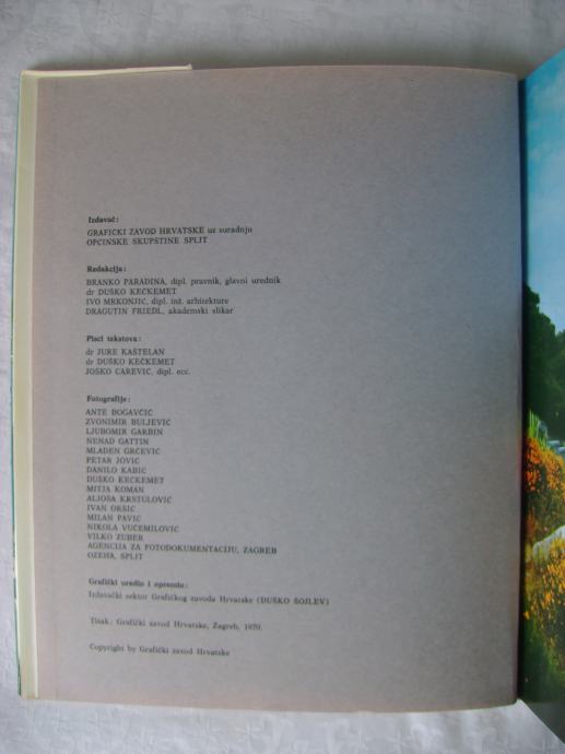 Fotomonografija Split - izdavač Grafički zavod Hrvatske uz suradnju Općinske skupštine Spčit, Zagreb 1970. godine, 24 x 30 cm, tvrdi uvez i papirnati omot, 182 stranice, prebogato ilustrirano crno-bijelim i kolor fotografijama.