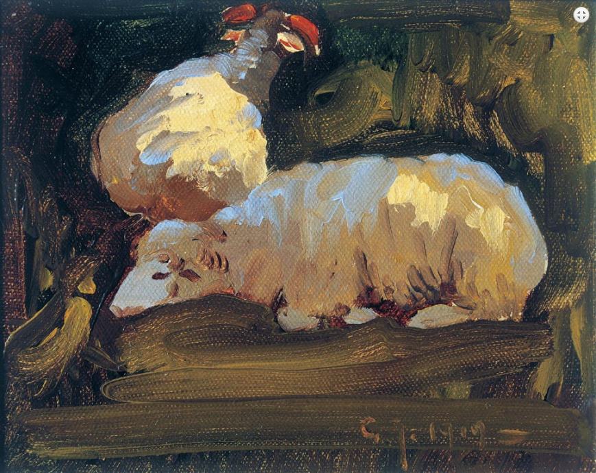 Njegovo prvo slikarsko razdoblje nakon studija ispunjeno je romantičarskim raspoloženjem, inspiriran je krajolicima (Kod ovaca, Marina I), a karakterizira ga i niz izvrsnih portreta gdje uspijeva duboko proniknuti u biće sebi dragih i bliskih ljudi i tako ih približiti i samom promatraču (Moja majka, Fra Eugen).