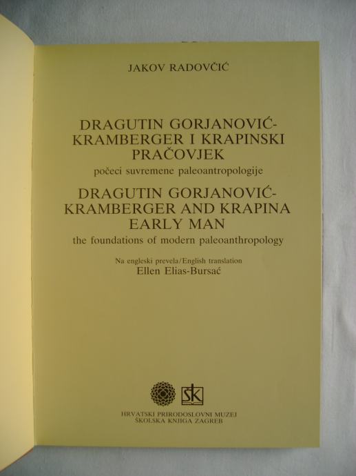 Jakov Radovčić - Dragutin Gorjanović-Kramberger i krapinski pračovjek - izdavači Hrvatski prirodoslovni muzej i Školska knjiga, Zagreb 1988. godine, 21 x 29 cm, tvrdi uvez i papirnati omot, 176 stranica, ilustrirano.