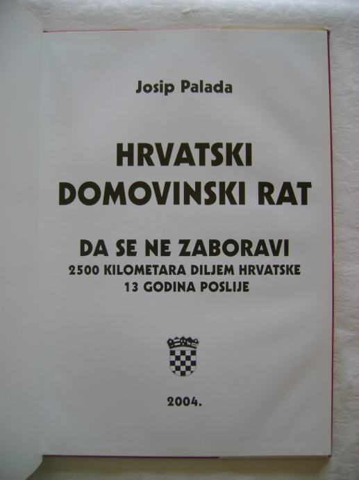 Josip Palada - Hrvatski Domovinski rat - Da se ne zaboravi; 2500 kilometara diljem Hrvatske, 13 godina poslije - izdavač Alineja, Koprivnica 2004. godine, 24 x 34 cm, tvrdi uvez i papirnati omot, 73 stranice, bogato ilustrirano, tiskano na sjajnom papiru.