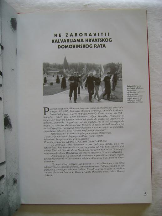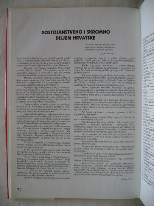 "Po riječima recenzenta Mladena Pavkovića, monografija je nastala kao rezultat počasne karavane koju je u svibnju organiziralo sedamdesetak hrvatskih branitelja Podravke i Ine-Naftaplina. Karavana je obišla cijelu Hrvatsku - od Zagreba do Dubrovnika, preko Knina, Iloka i Vukovara, ponovno do Zagreba.