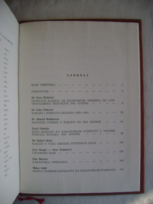 Grupa autora - Kakanj * Monografija * - glavni urednik Miodrag Čanković, izdavači Istorijski arhiv Sarajevo i Komisija za istoriju OK SK BiH Kakanj, Sarajevo 1987. godine, 18 x 25 cm, tvrdi platneni uvez, 321 stranica, ilustrirano.