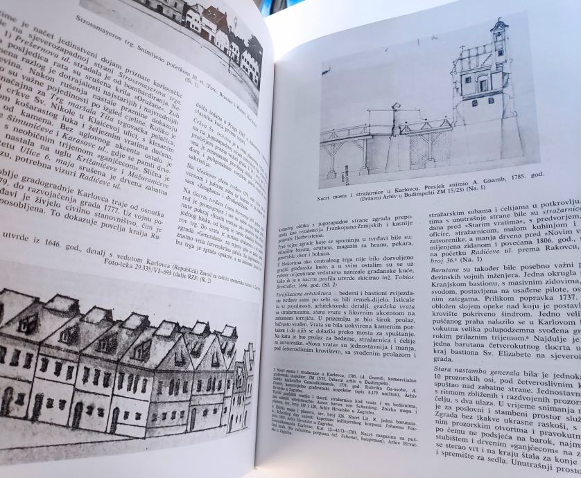 Zabilješke: Sadržaj: Vladimir Blašković: Orografska i hidrografska obilježja Karlovca i okolice; Vladimir Peršin: Prilog istraživanjima živog svijeta i zaštite prirode u karlovačkoj regiji; Radovan Pavić: Geografski položaj i nove prometne mogućnosti Karlovca; Josip Šmic: Arheološki podaci Karlovca i okoline; Josip Adamček: Ratovi s Turcima i položaj zavisnih seljaka u Pokuplju u drugoj polovici XV i XVI stoljeća; Fedor Moačanin: Osnovni problemi obrane Hrvatske u 16. stoljeću; Nada Klaić: Nastajanje Krajine u XVI stoljeću s posebnim obzirom na postanak Karlovca; Zorislav Horvat - Milan Kruhek: Stari gradovi i utvrđenja u obrani Karlovca u XVI i XVII stoljeću; Milan Kruhek: Postanak i razvoj tvrđave i grada Karlovca; Katica Miholović: Značenje Karlovca kao snažnog središta trgovine, obrta i prometa u 18. stoljeću; Zlatko Herkov: Statut grada Karlovca od godine 1778. itd.
