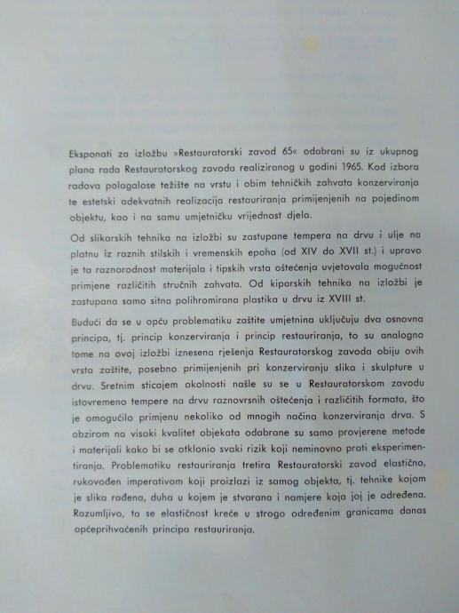 IZLOŽBA RADOVA RESTARURATORSKOG ZAVODA JUGOSLAVENSKE AKADEMIJE ZNANONOSTI I UMJETNOSTI