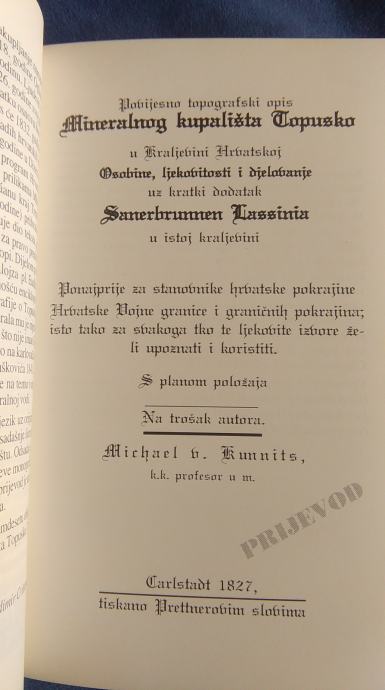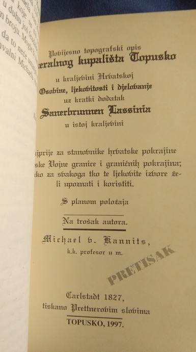 povijesno topografski opis mineralnog kupališta - TOPUSKO