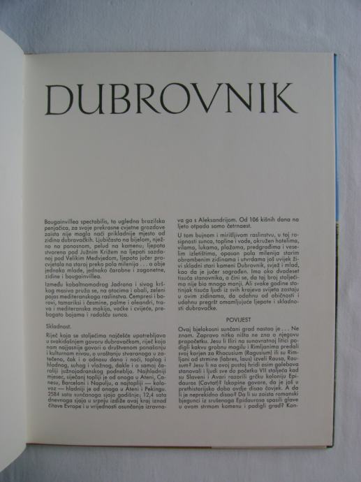 otomonografija Dubrovnik - tekst Ivan Raos, foto Gattin, Dabac, Pavić, Zuber, Eterović i drugi, izdavač Spektar Zagreb, 24 x 30 cm, tvrdi uvez i papirnati omot, bogato ilustrirano fotografijama tadašnjih vrsnih fotografa.
