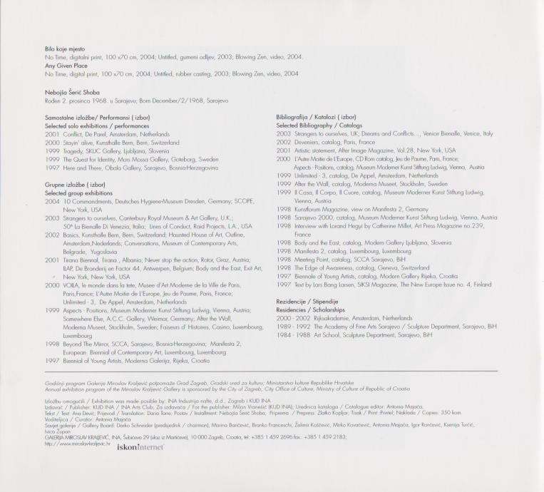 Nebojša Šerić Shoba: Bilo koje mjesto, Galerija "Miroslav Kraljević", Zagreb 2004.