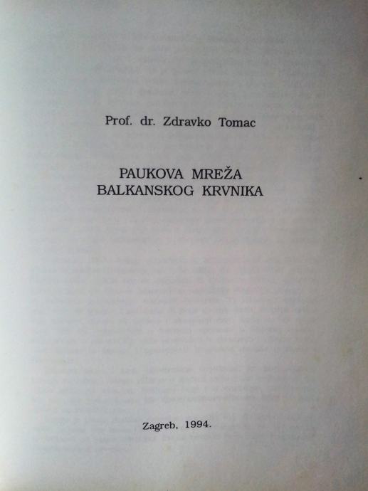 PAUKOVA MREŽA BALKANSKOG KRVNIKA, ZDRAVKO TOMAC, BIROTISAK, 1994