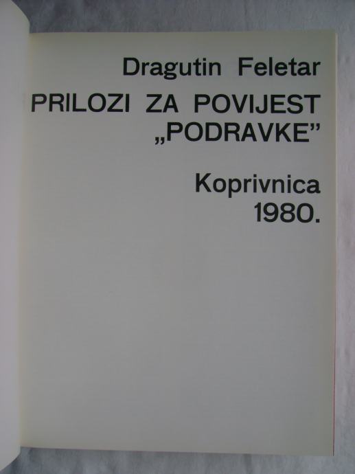 Podravka - Dragutin Feletar - Prilozi za povijest "Podravke" izdavač SOUR Podravka Koprivnica, 1980. godine, 24 x 31 cm, tvrdi uvez i papirnati omot, 440 stranica, bogato ilustrirano.