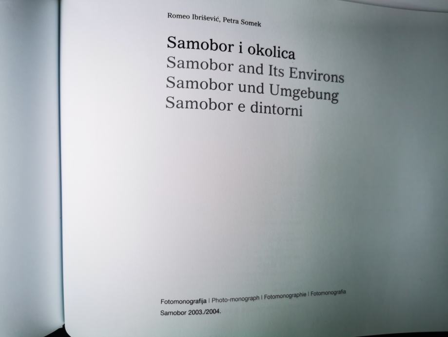 Prelijepa fotomonografija Samobora i okolice pruža čitatelju niz vrijednih informacija i prekrasnih slika grada Samobora i njegove živopisne okolice. Tekst je napisala Samoborka Petra Somek, a paralelni je prijevod na engleskom, njemačkom i talijanskom jeziku. Vrsne fotografije načinio je Romeo Ibrišević. Na kraju knjige, u prilogu, nalazi se panoramska karta Samobora i okolice s ucrtanim planinarskim stazama.