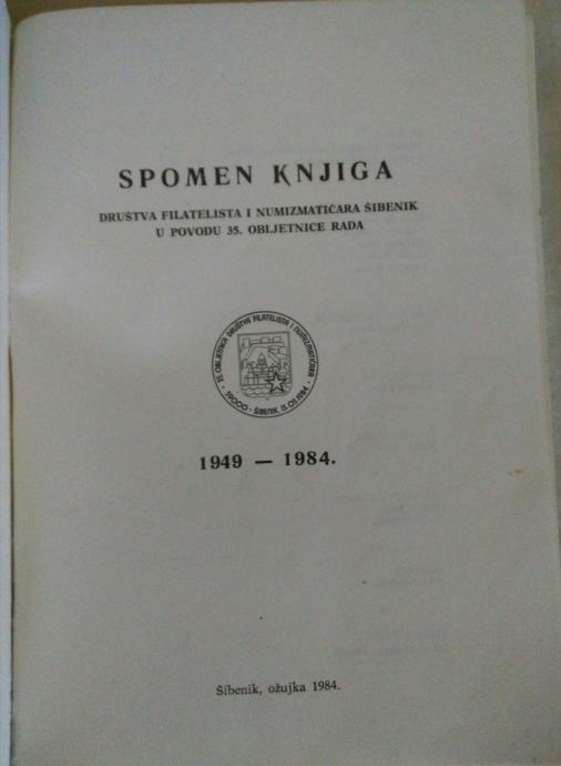 SPOMEN KNJIGA DRUŠTVA FILATELISTA I NUMIZMATIČARA ŠIBENIK