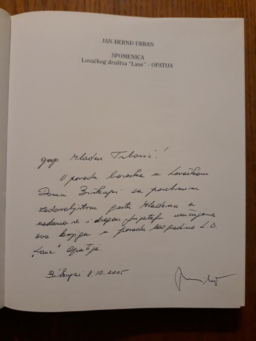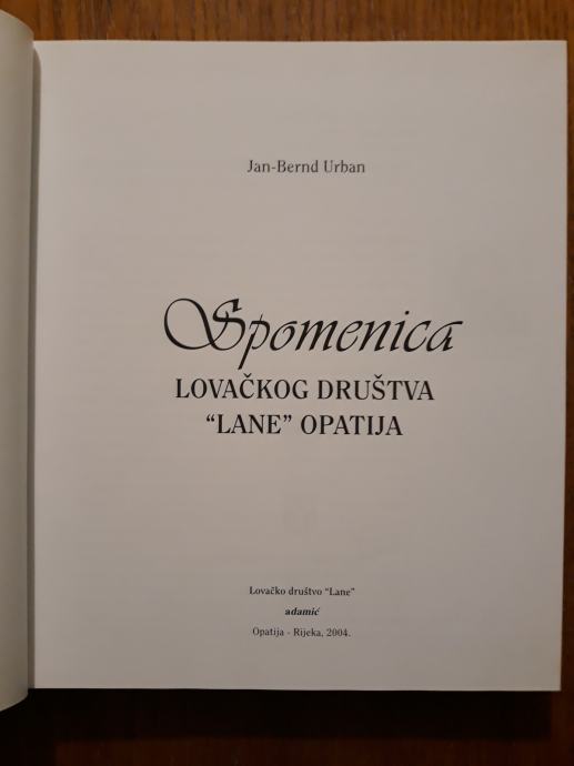 Spomenica Lovačkog društva "LANE" Opatija / Jan - Bernd Urban