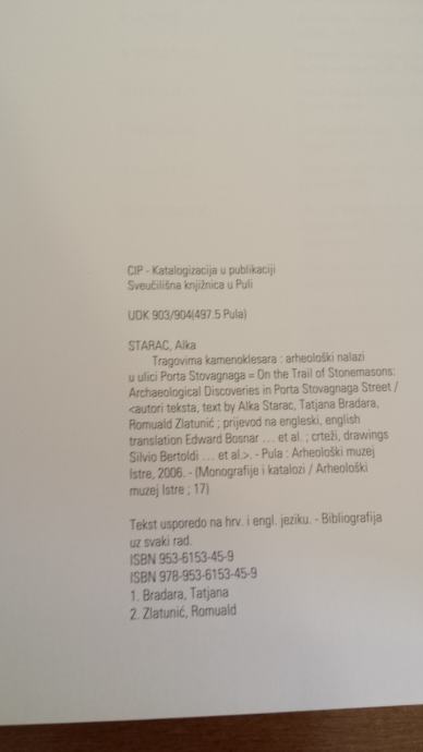 Monografija TRAGOVIMA KAMENOKLESARA arheološki nalazi u Ulici Porta Stovagnaga