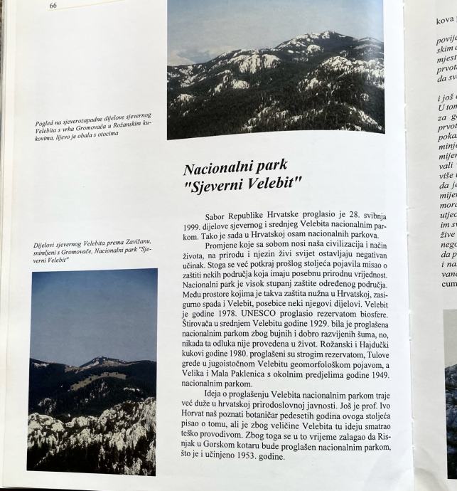 Velebit, fotomonografija, autor Ante Pelivan, naklada Ekološki glasnik, Donja Lomnica, 1999. godina.