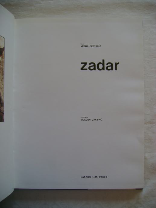 Vesna Cestarić / Mladen Grčević - Zadar - fotomonografija, izdavač Narodni list Zadar, 24 x 31 cm, tvrdi platneni uvez i papirnati omot, 120 stranica, prebogato ilustrirano, tiskano na sjajnom papiru.