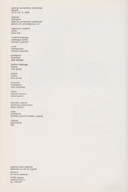 Vladan Radovanović, Galerija suvremene umjetnosti, Zagreb 1979.