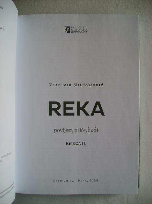 Vladimir Milivojević - Reka (kod Koprivnice) - povijest, priče, ljudi; knjiga 2. - izdavač Muzej grada Koprivnice, 2020. godine, 17 x 24 cm, meki uvez sa preklopom, 255 stranica, bogato ilustrirano, naklada 400 primjeraka.