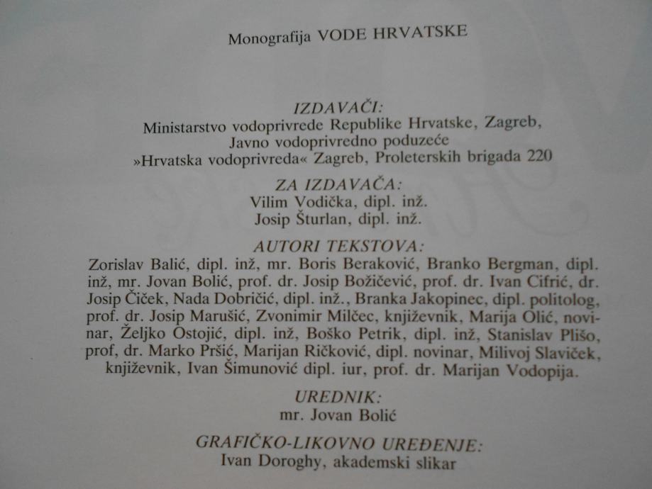 Izdavač: Ministarstvo vodoprivrede Republike Hrvatske, Zagreb,