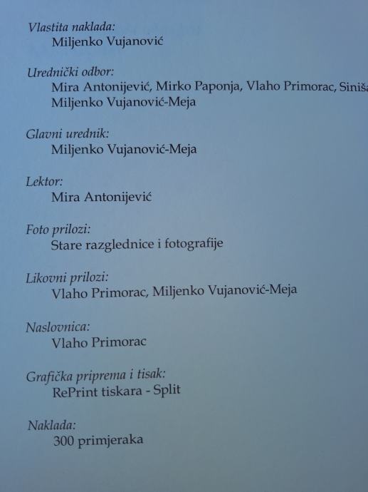 Prodajem knjigu Miljenka Vujanovića Meje pod naslovom "Ispod Pala", izdanu u Splitu 2006. godine u vlastitoj nakladi autora. Knjiga pripada publicistici i donosi sadržaj vezan uz splitski kraj, obogaćen starim razglednicama i fotografijama te likovnim prilozima Vlade Primorca i samog autora.