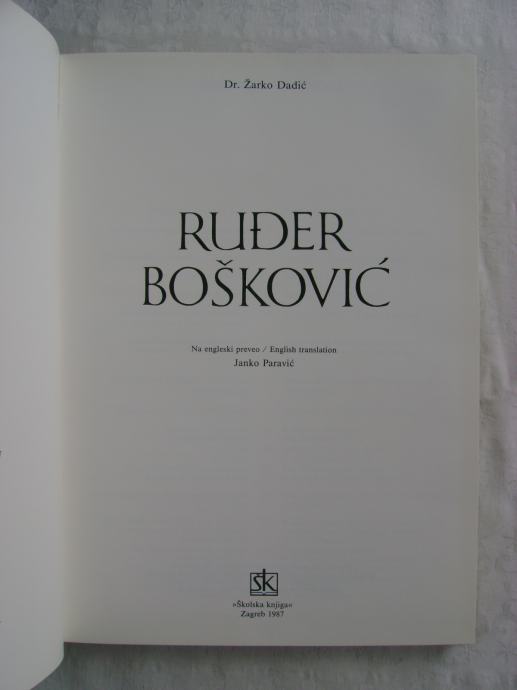 Žarko Dadić - Ruđer Bošković - monografija, izdavač Školska knjiga, Zagreb 1987. godine, 21 x 29 cm, tvrdi uvez i papirnati omot, 208 stranica, ilustrirano.