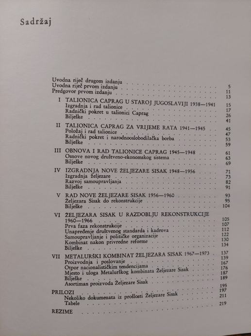 - Izdavač : Metalurški kombinat Željezara Sisak, 1974.