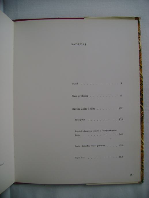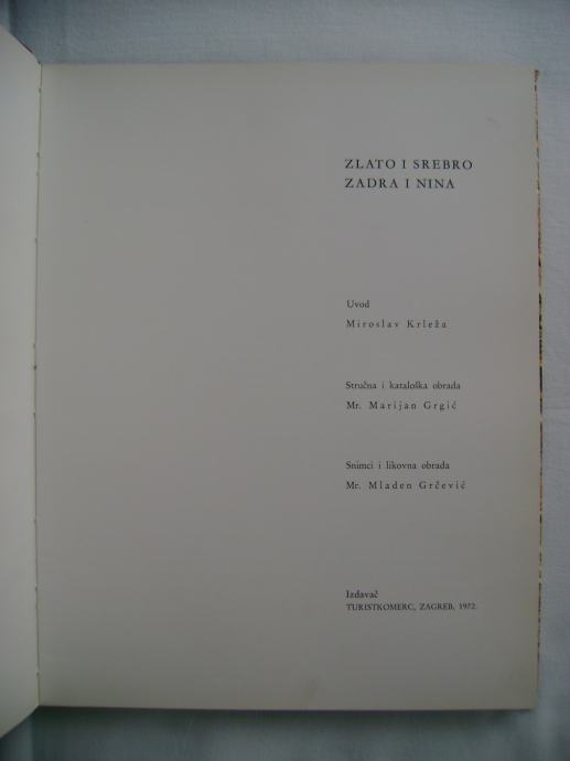 Zlato i srebro Zadra i Nina - uvod Miroslav Krleža, fotografije Mladen Grčavić, izdavač Turistkomerc, Zagreb 1972. godine, 24 x 31 cm, tvrdi uvez i papirnati omot, 187 stranica, prebogato ilustrirano.