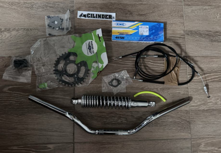 -Promjenjeno: komplet vanjske i unutarnje gume, sve sajle, nove cahure prednjeg amotrizera, novi zadnji amotrizeri, gumice na mjenjaču i nožnoj kočnici, ručke na volanu ,novi retrovizori, sirena, prednje svijetlo, ….(Kupljeni novi lanac i lančanici i komplet sajle za rezervu)
