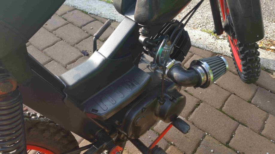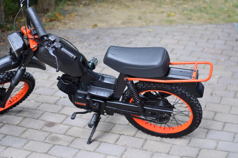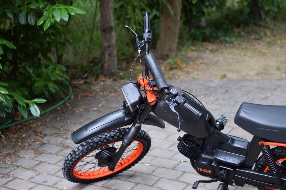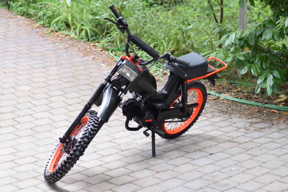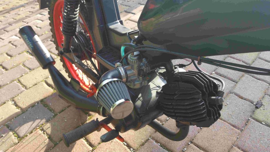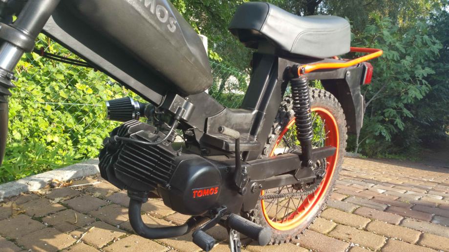 Tomos apn 6, agregat od bt-a original,Usis složen je pod koso da paše na ramu. Na fergazeru je nova gljiva - delo power air filter. Motor ide izvrsno! Cijela mašina je bila rastavljena i reparirana pred 350 km. Prošle zime je motor bio rastavljen do zadnje šerafa i obnovljen. Auspuh je master za bt. Prednja vilica, volan i kotač su od atx-a radi boljeg izgleda. Svijetla rade, truba radi. Uz njega dajem i auspuh od t15 s kojim ide malo bolje po brijegima. Prijenos je 13/34, motor ide 85 kmh. Gume su cross od proizvođača vee ruber kupljene u agMoto pred godinu dana. Radilica je bez imalo lufta i u izvrsnom je stanju kao i cijela mašina. Na motoru je i brzinomjer(digitalni). Ručke gasa i kvačilo su također od bt-a. Zatim motor ima ugrađenu nogicu umjesto onih rašlja, nogica je od atx-a. Redovito grijan prije vožnje i u savršenom je stanju. Registriran je do 8. mj. 2018, cijena nije fixna.