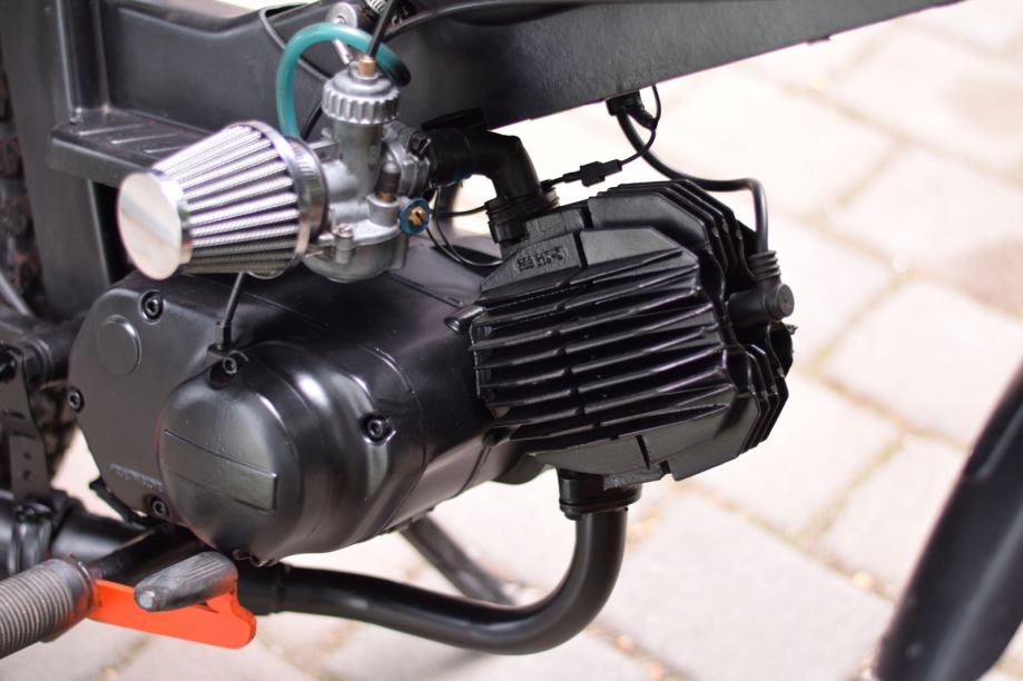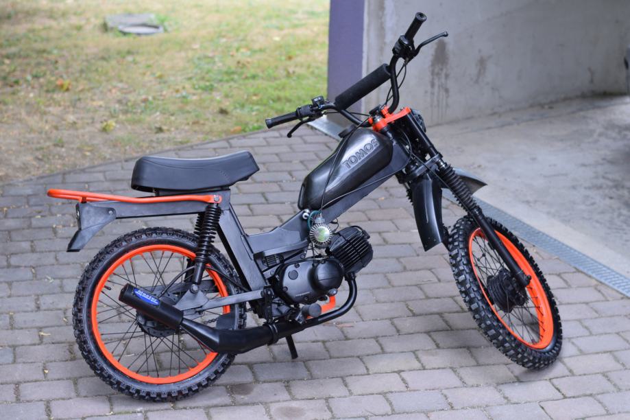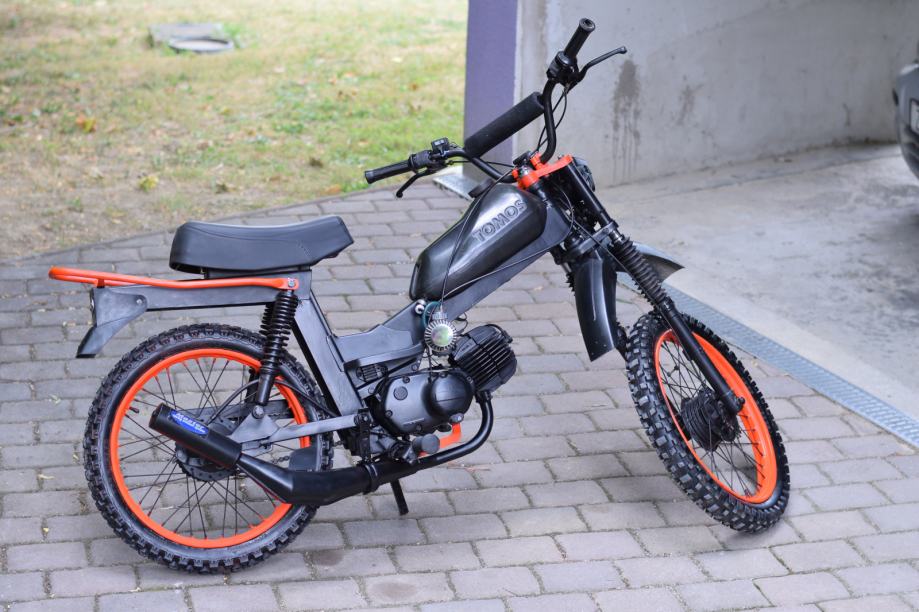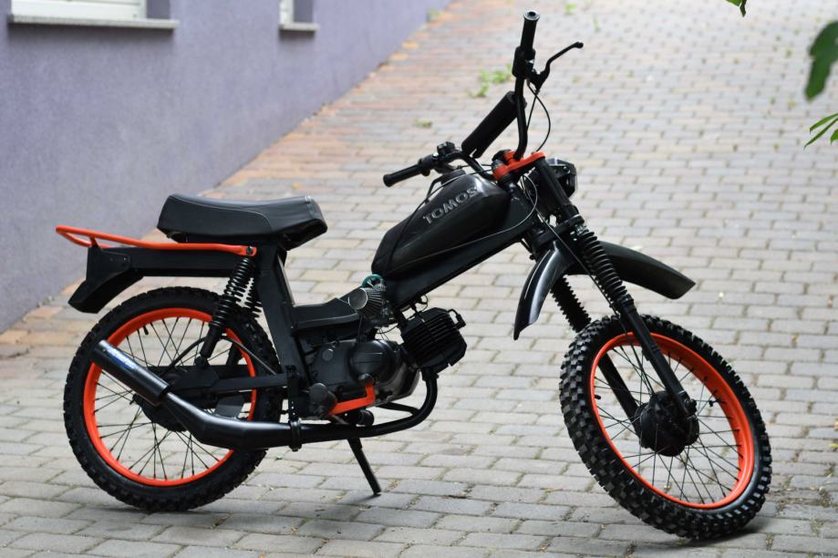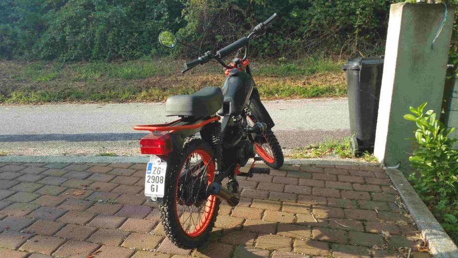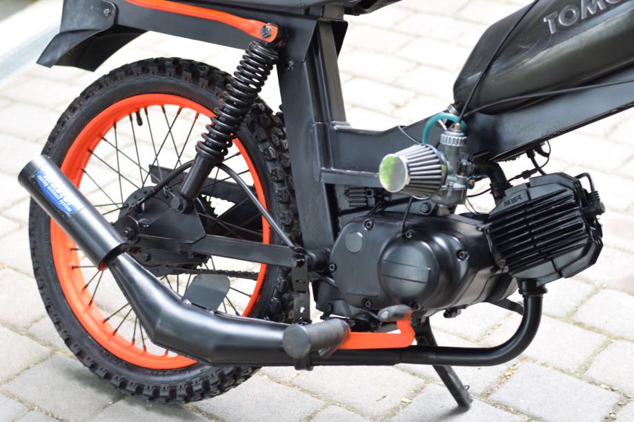 Tomos apn 6, agregat od bt-a original,Usis složen je pod koso da paše na ramu. Na fergazeru je nova gljiva - delo power air filter. Motor ide izvrsno! Cijela mašina je bila rastavljena i reparirana pred 350 km. Prošle zime je motor bio rastavljen do zadnje šerafa i obnovljen. Auspuh je master za bt. Prednja vilica, volan i kotač su od atx-a radi boljeg izgleda. Svijetla rade, truba radi. Uz njega dajem i auspuh od t15 s kojim ide malo bolje po brijegima. Prijenos je 13/34, motor ide 85 kmh. Gume su cross od proizvođača vee ruber kupljene u agMoto pred godinu dana. Radilica je bez imalo lufta i u izvrsnom je stanju kao i cijela mašina. Na motoru je i brzinomjer(digitalni). Ručke gasa i kvačilo su također od bt-a. Zatim motor ima ugrađenu nogicu umjesto onih rašlja, nogica je od atx-a. Redovito grijan prije vožnje i u savršenom je stanju. Registriran je do 8. mj. 2018, cijena nije fixna.