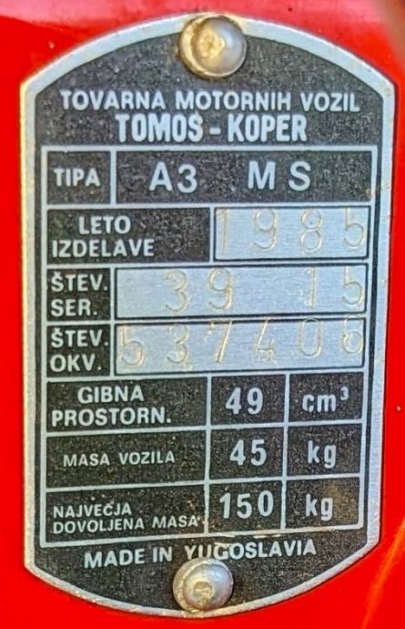 Tomos Automatic A3 MS 49 cm3, 1985 god.