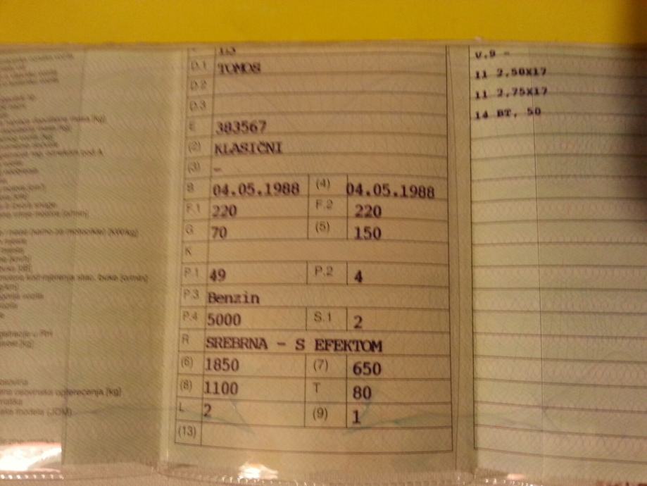 TOMOS BT 50 ORG STANJE ZAMJENA, 1988 god.